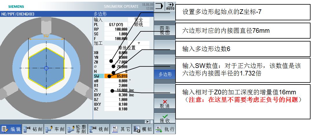 3. 使用西门子内置的加工循环可以大大缩短程序的长度,节省现场编程的工作量,填写数值时注意数值的正负号。