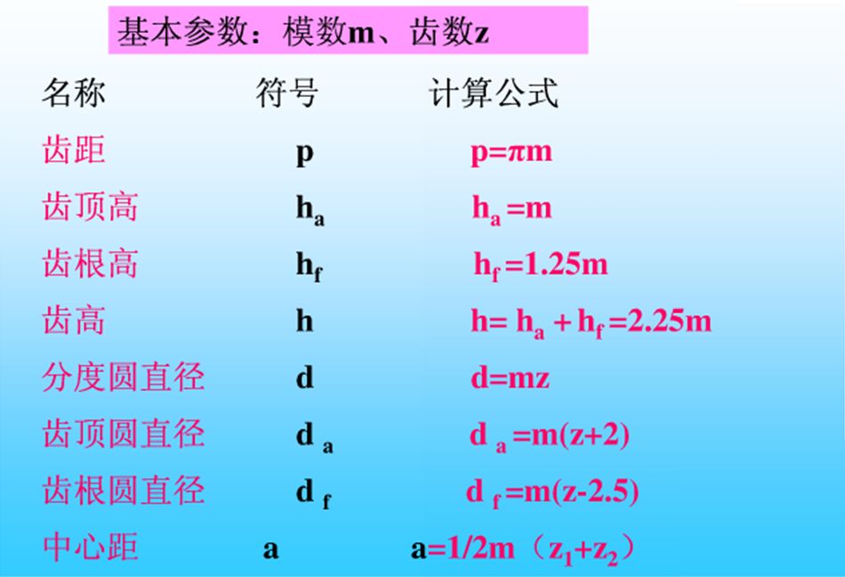 直齿圆柱齿轮的尺寸计算: