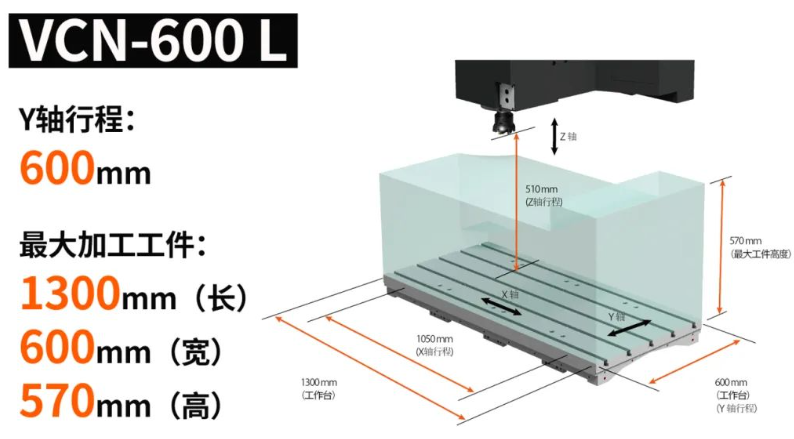 拥有大级别的Y轴行程和工作台尺寸,可装载大型夹具和工件。